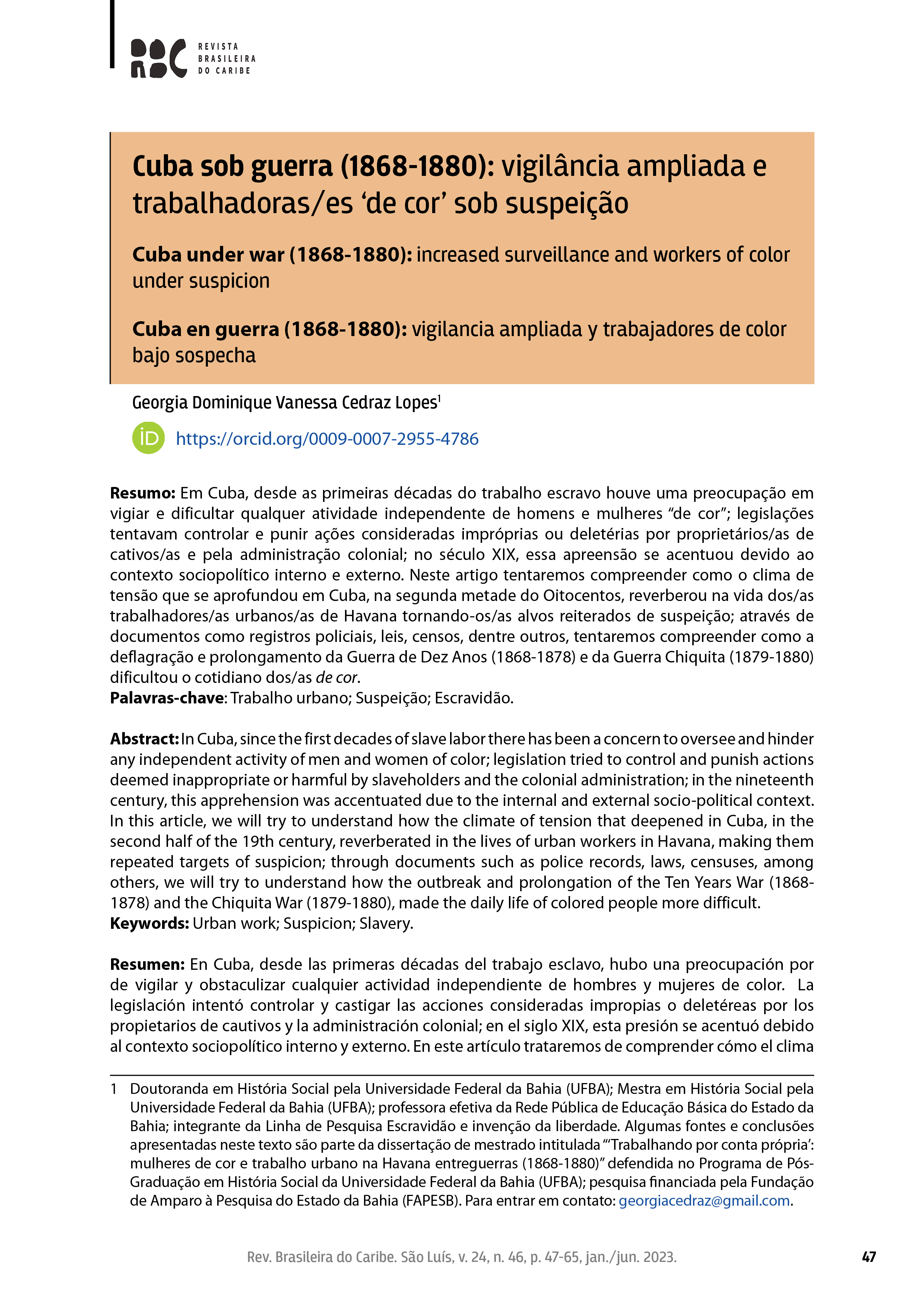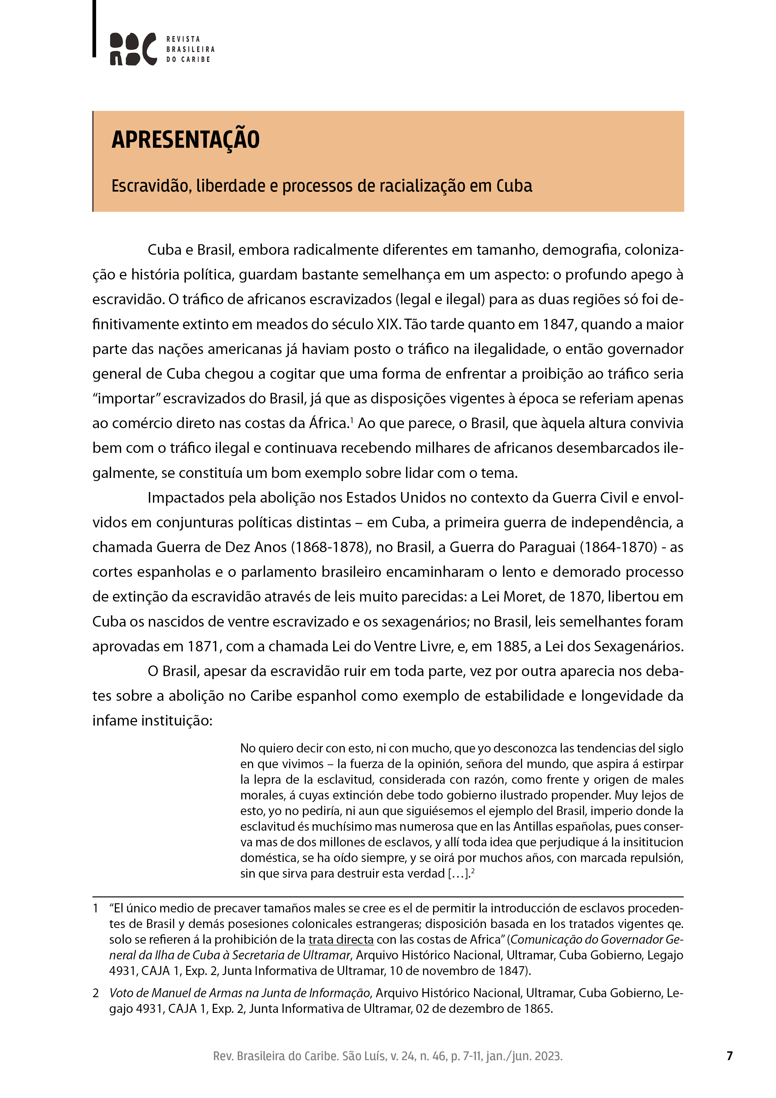 v. 24, n. 46, jan./jun. 2023: Dossiê "Escravidão, liberdade e processos de racialização em Cuba"