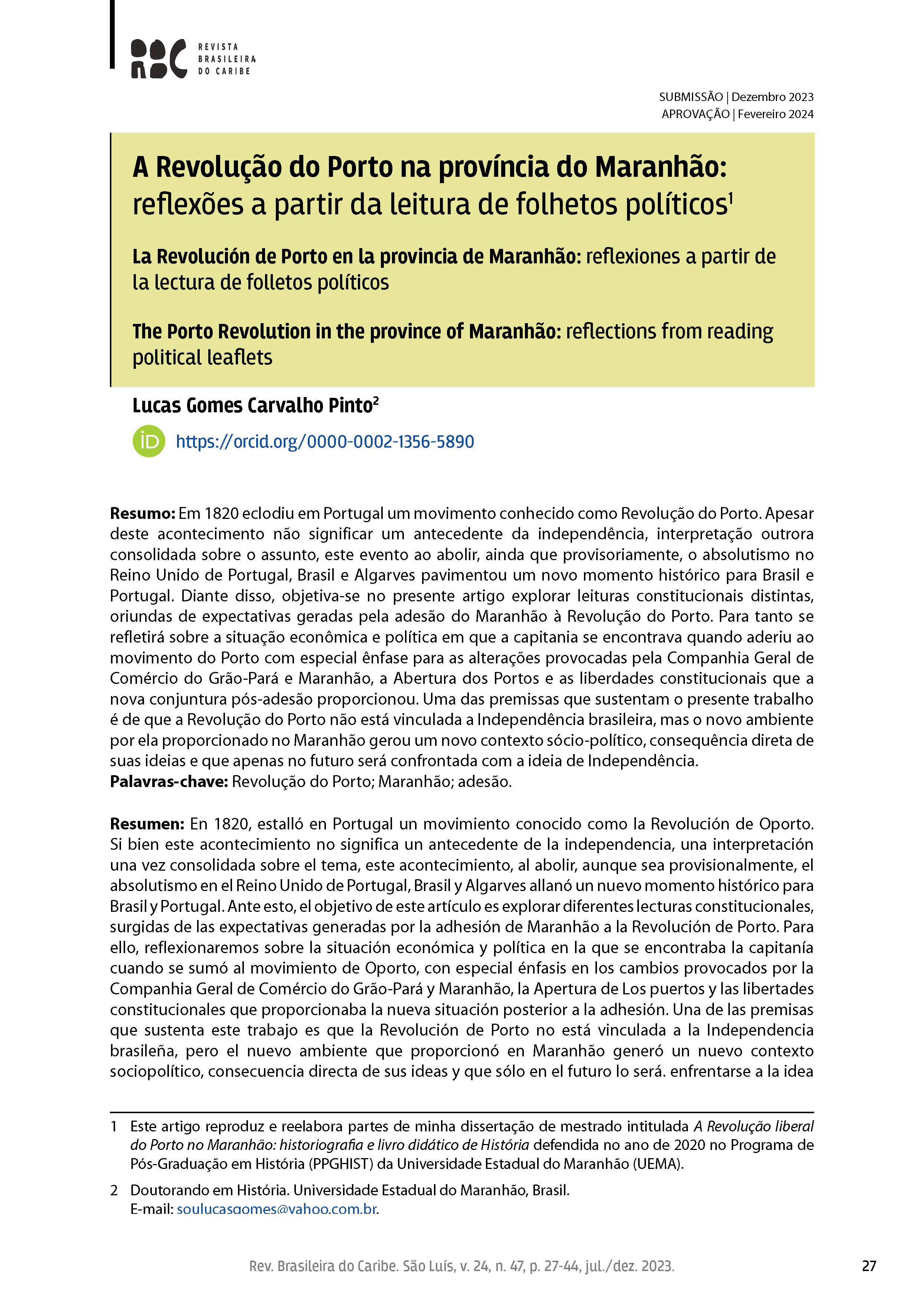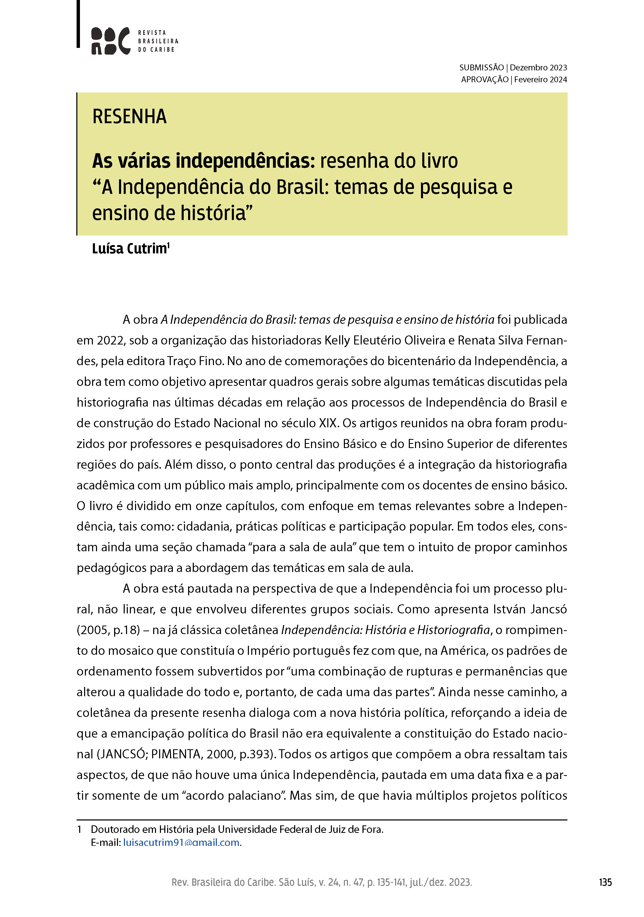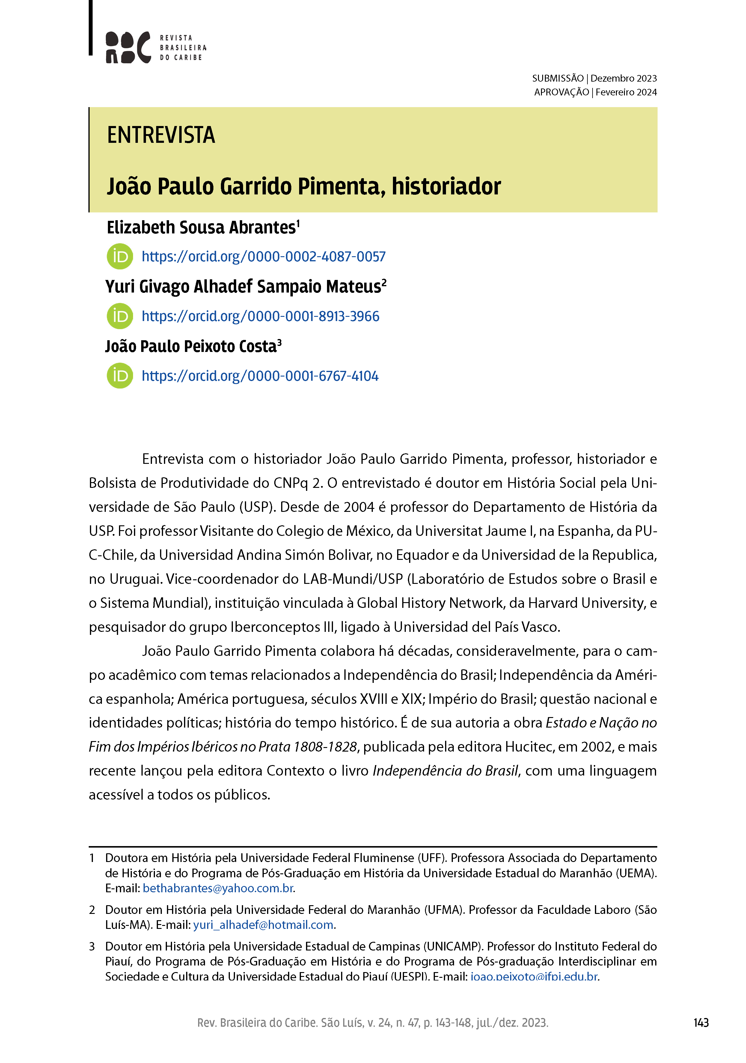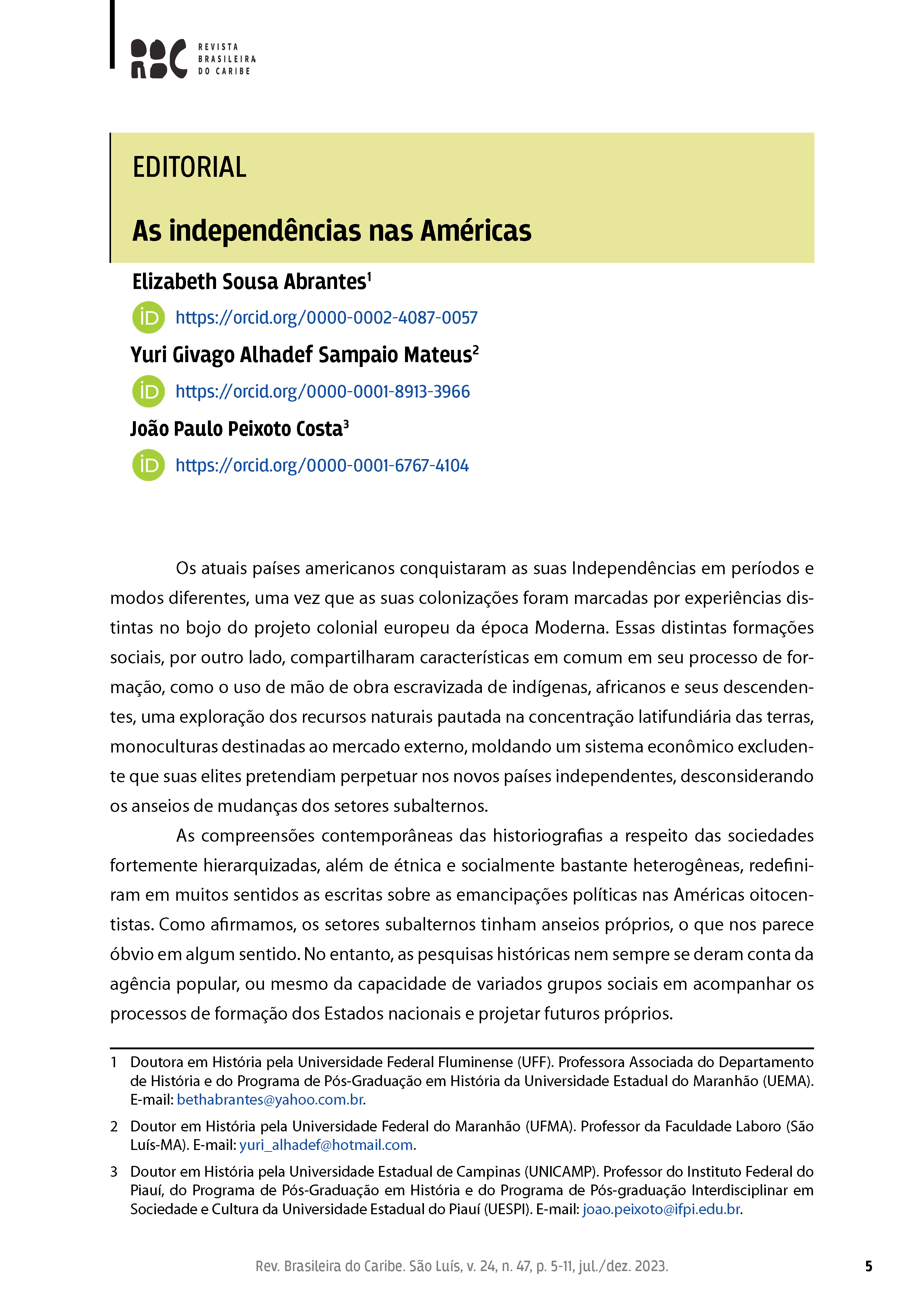 Dossiê: "Independência nas Américas", organizado por Elizabeth Sousa Abrantes, Yuri Givago Alhadef Sampaio Mateus e João Paulo Peixoto Costa